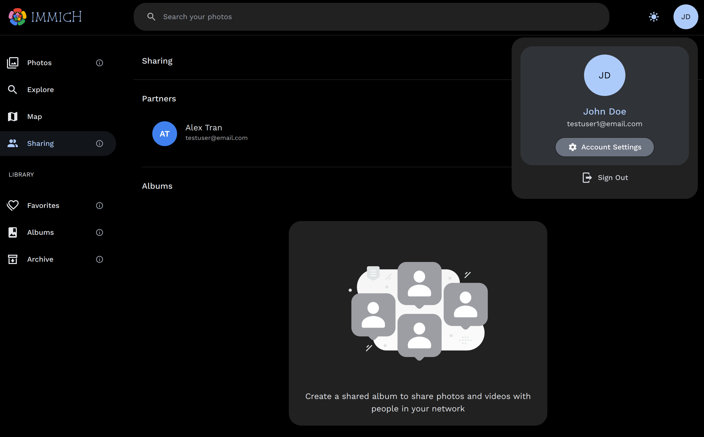 Immich allows you to share your library with other users. They can then view your library and download the assets.